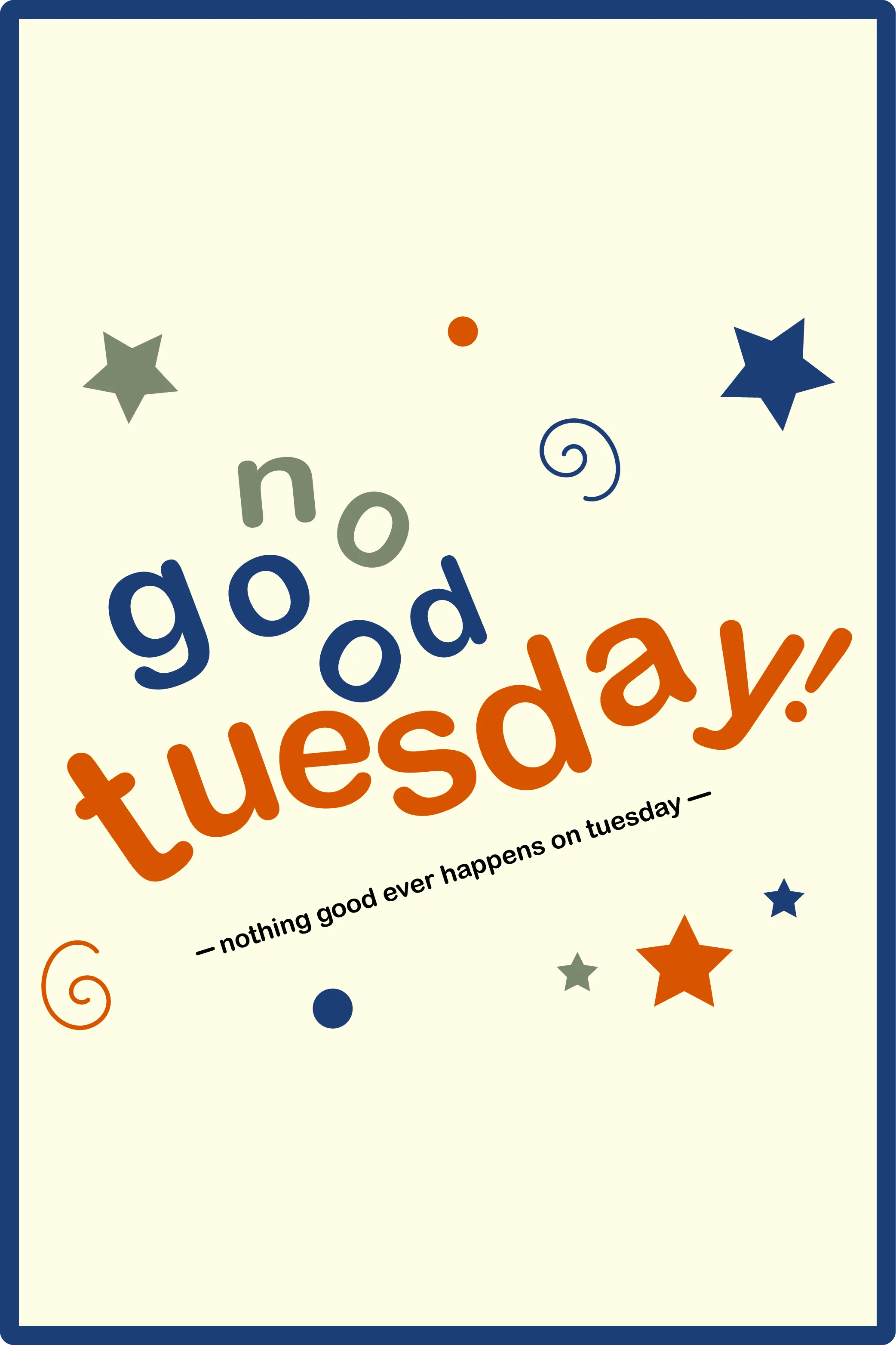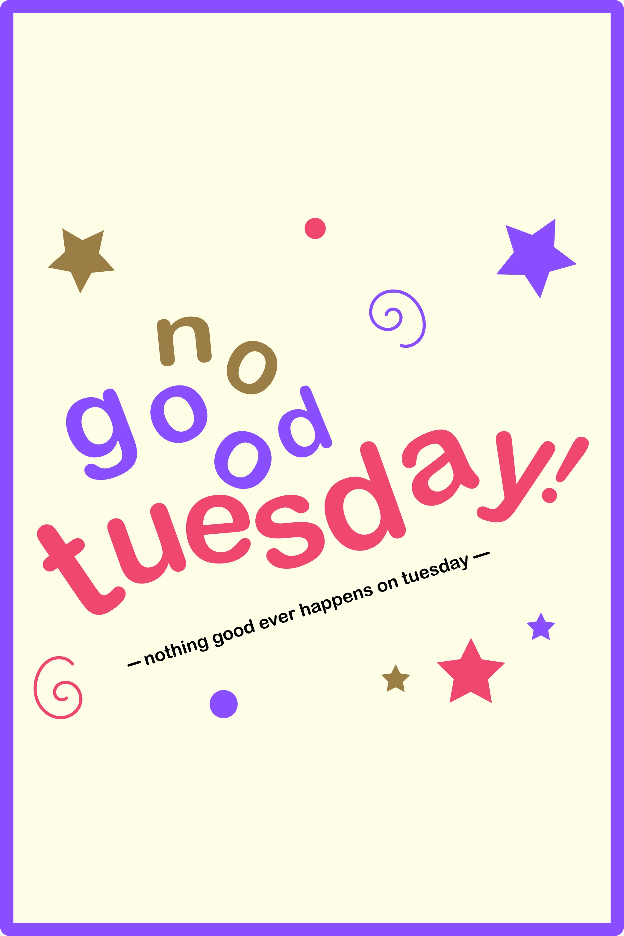no good tuesday: because nothing good happens on tuesday
